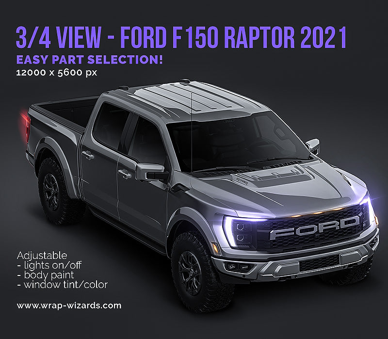 3/4 FRONT VIEW - Ford F150 Raptor 2021 - Truck/Pick-up Mockup