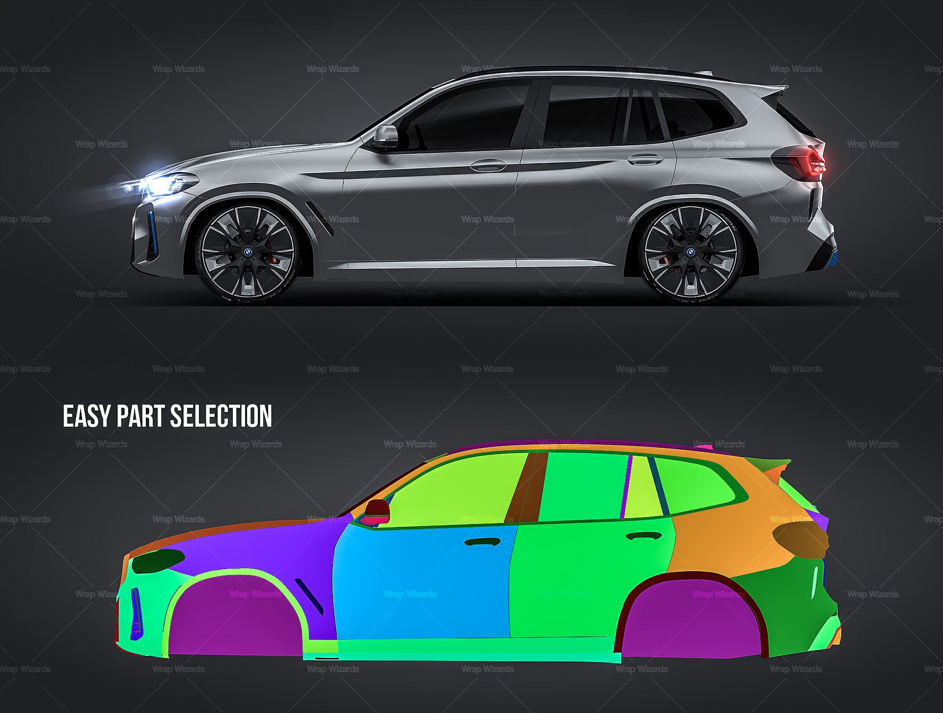 The templates are made on smartly and usefully separated layers to make adding design parts, custom color, placing logos or stickers and doing all adjustments as suspension height or rims change as easy and quick as possible - because we want to improve your job and save your time!