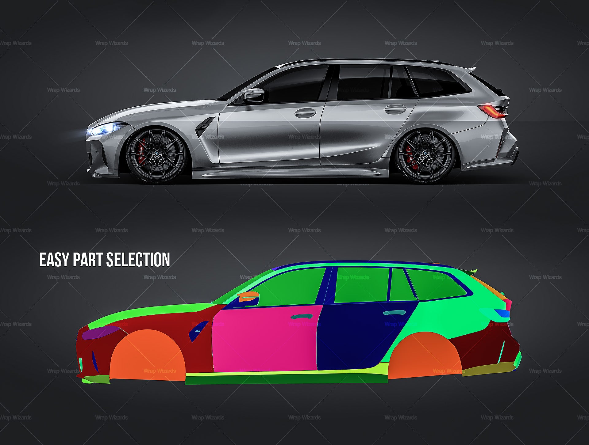 The templates are made on smartly and usefully separated layers to make adding design parts, custom color, placing logos or stickers and doing all adjustments as suspension height or rims change as easy and quick as possible - because we want to improve your job and save your time!