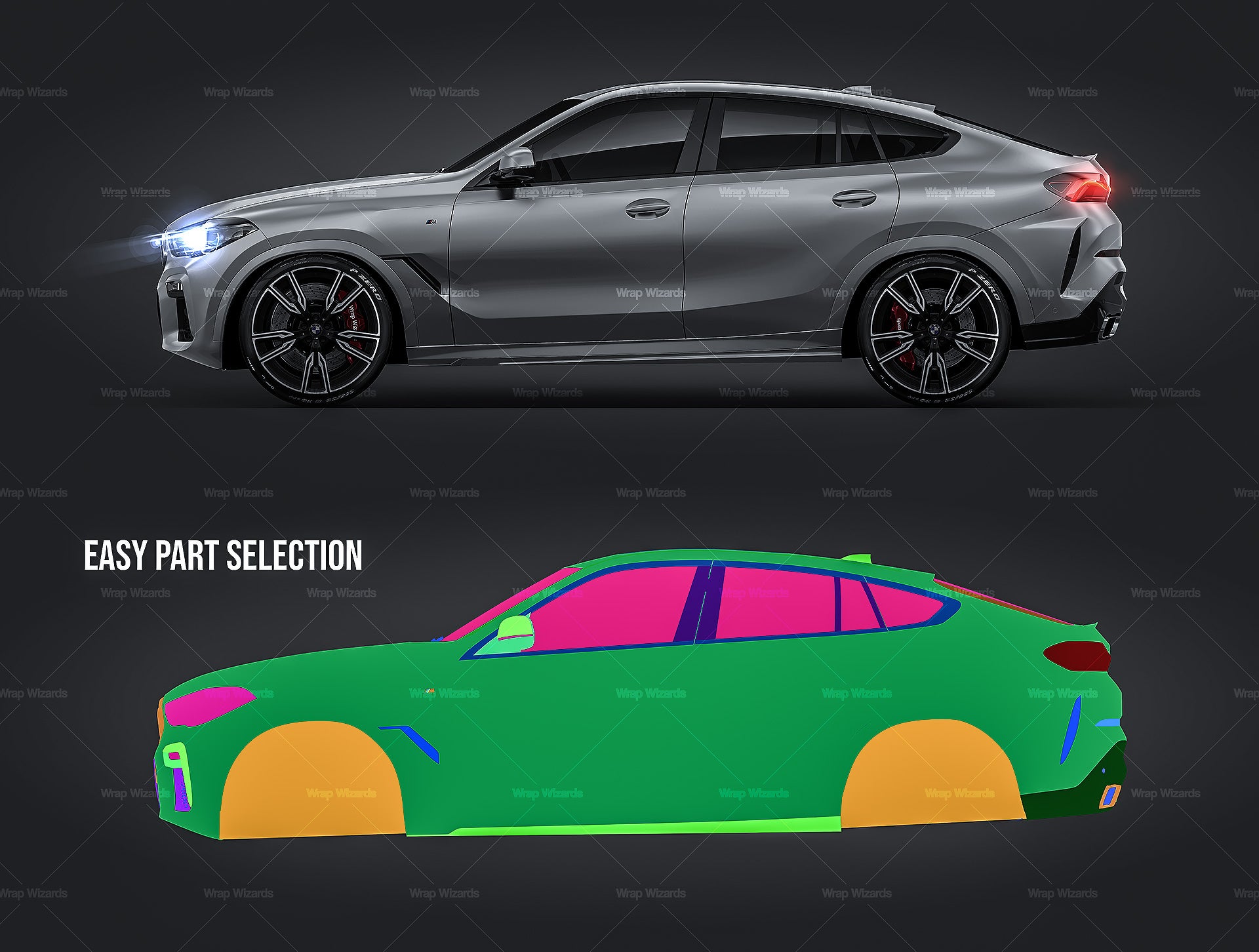The templates are made on smartly and usefully separated layers to make adding design parts, custom color, placing logos or stickers and doing all adjustments as suspension height or rims change as easy and quick as possible - because we want to improve your job and save your time!