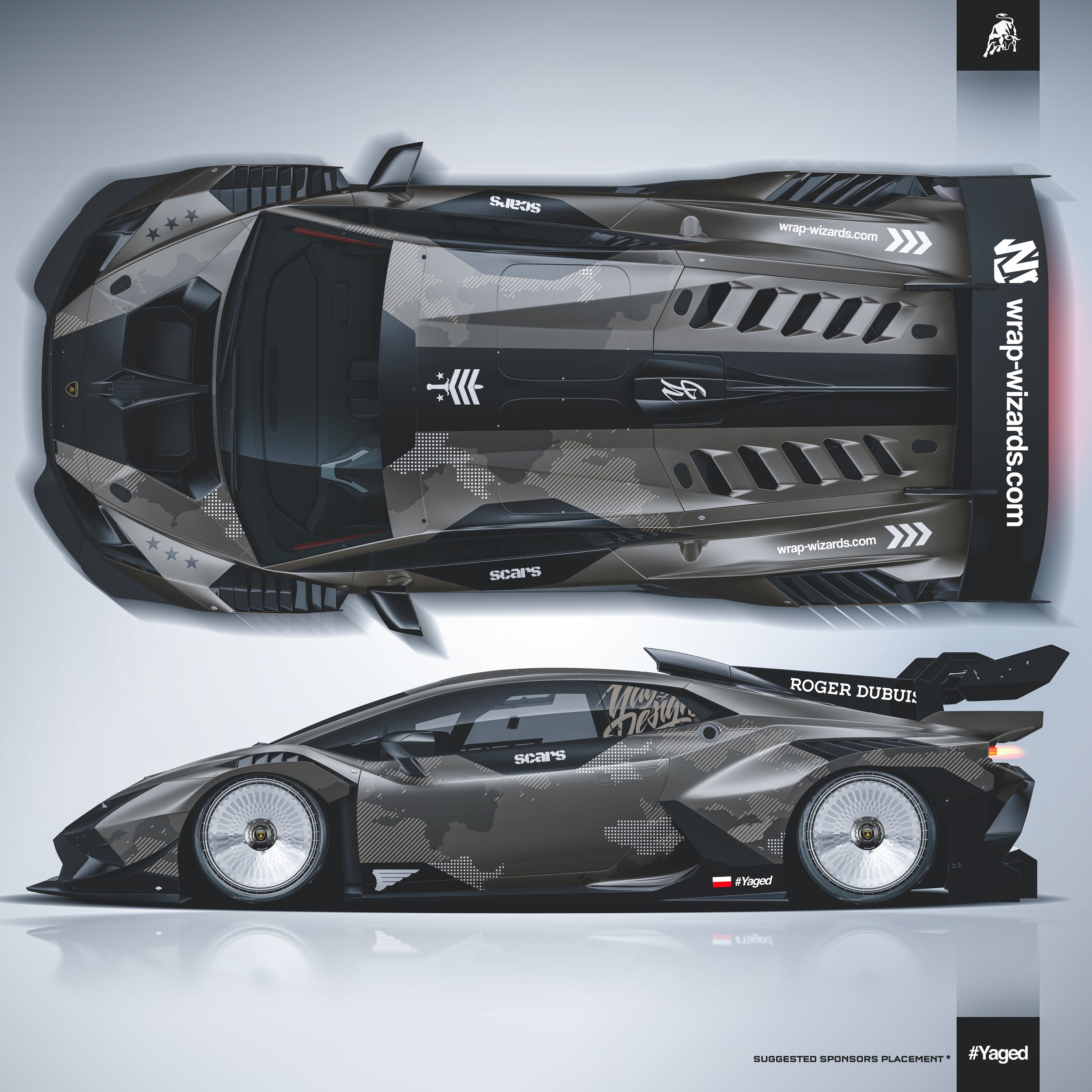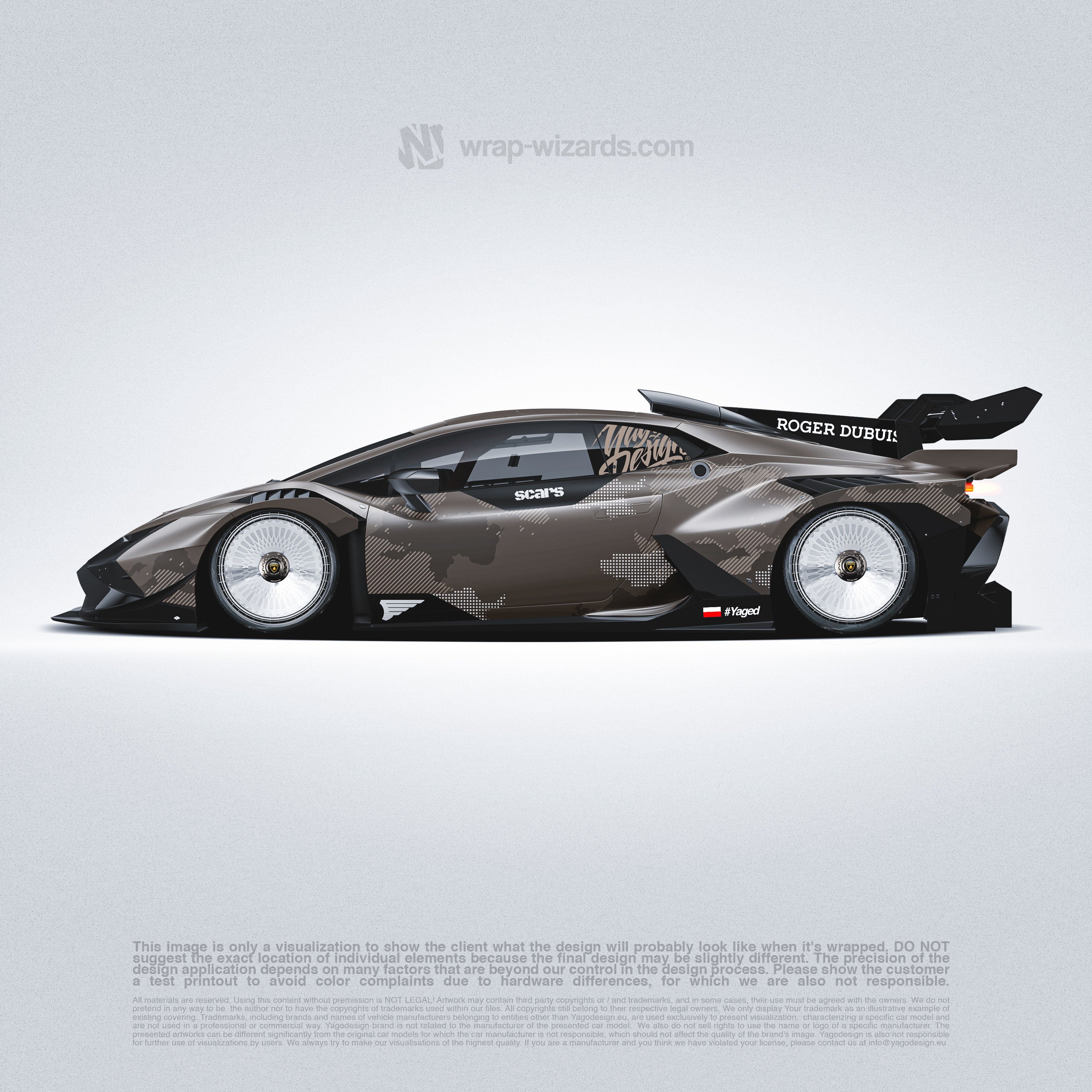 Send Your lambo model and Year AT CUSTOM@WRAP-WIZARDS.COM / ORDER NUMBER / LAMBO MODEL, and we will prepare you preview and PRINT FILES.