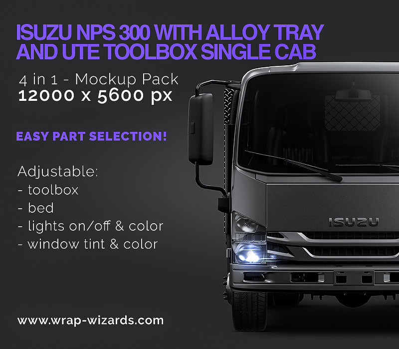Isuzu NPS 300 truck single cab with alloy tray and toolboxes - Truck/Pick-up Mockup