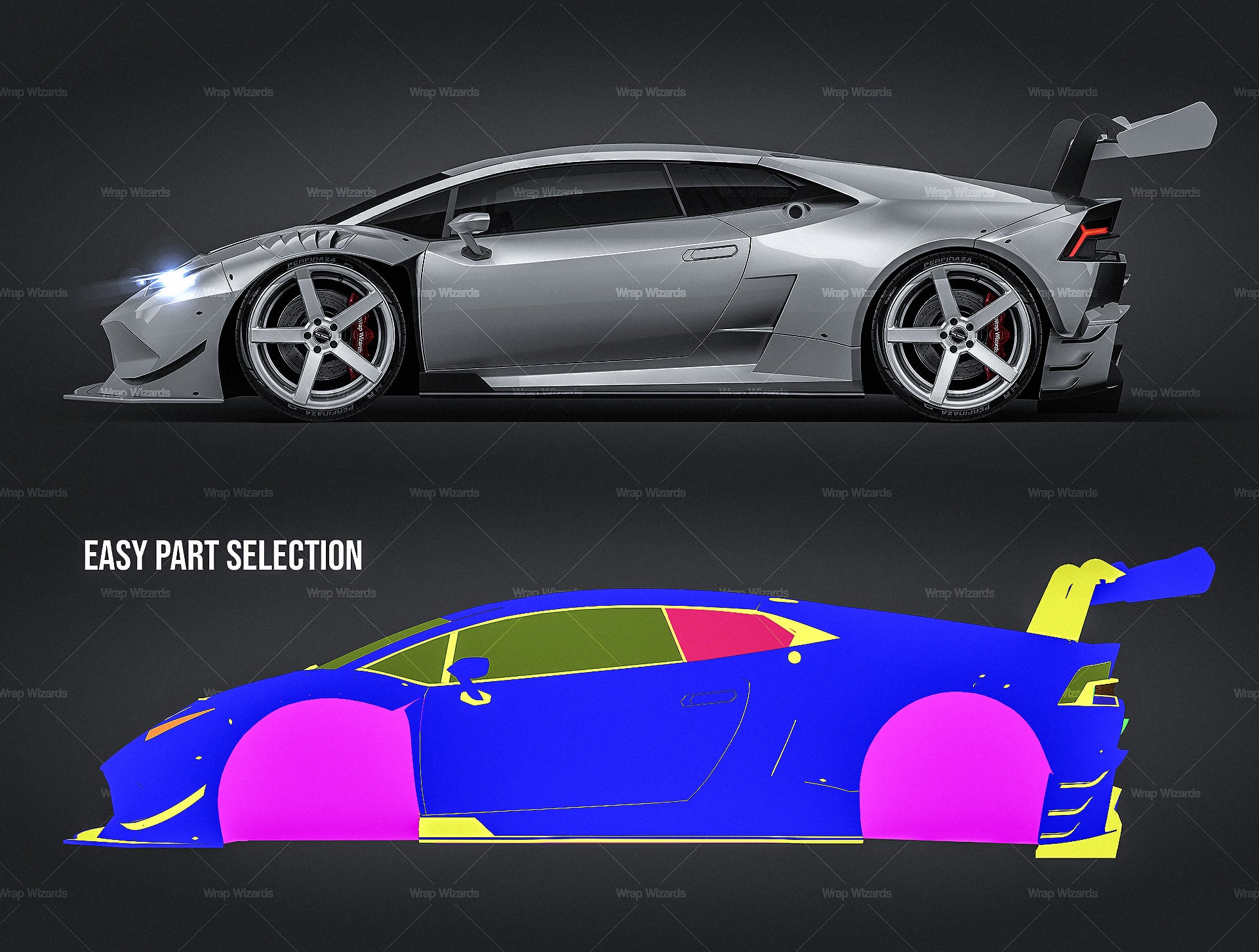The templates are made on smartly and usefully separated layers to make adding design parts, custom color, placing logos or stickers and doing all adjustments as suspension height or rims change as easy and quick as possible - because we want to improve your job and save your time!