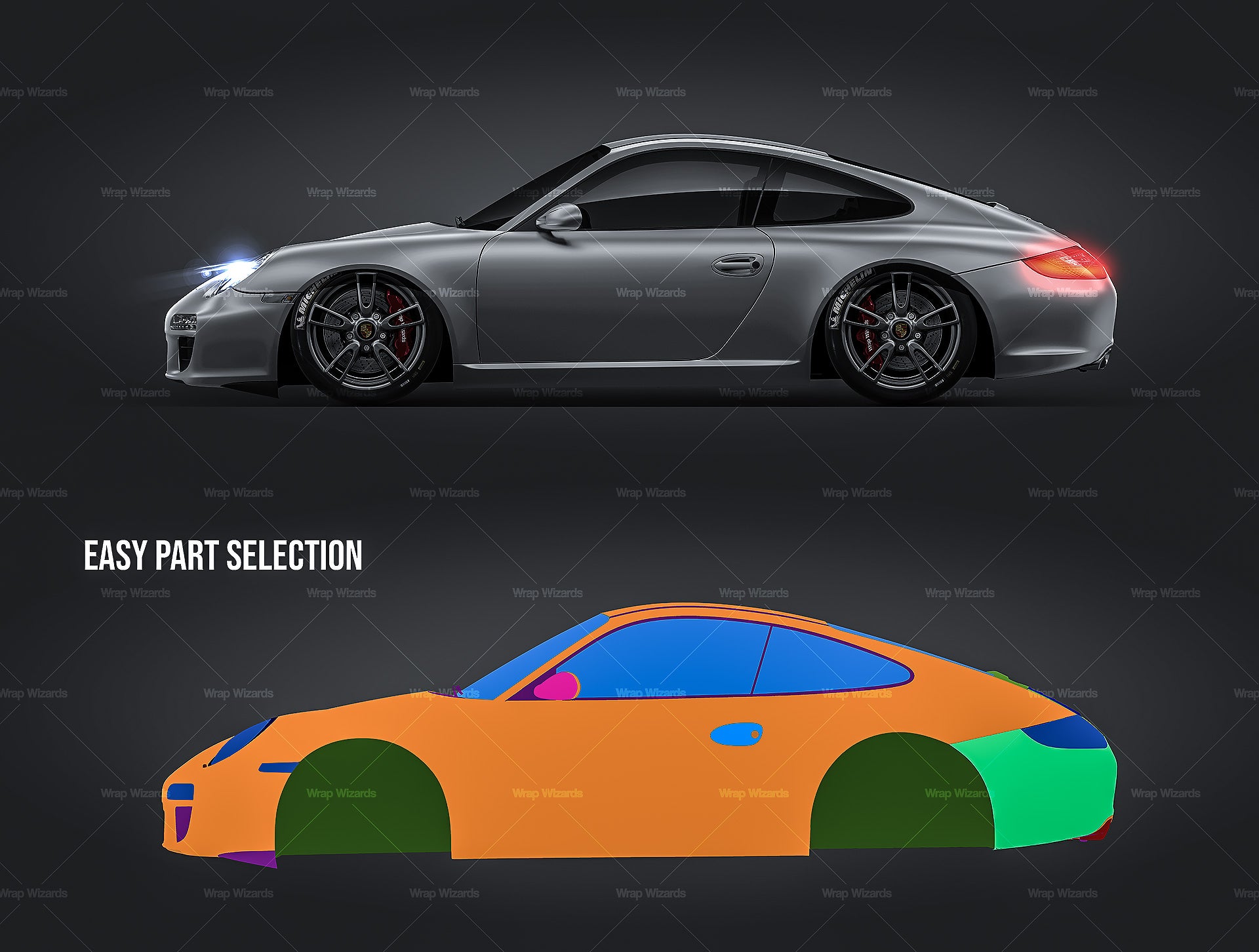 The templates are made on smartly and usefully separated layers to make adding design parts, custom color, placing logos or stickers and doing all adjustments as suspension height or rims change as easy and quick as possible - because we want to improve your job and save your time!