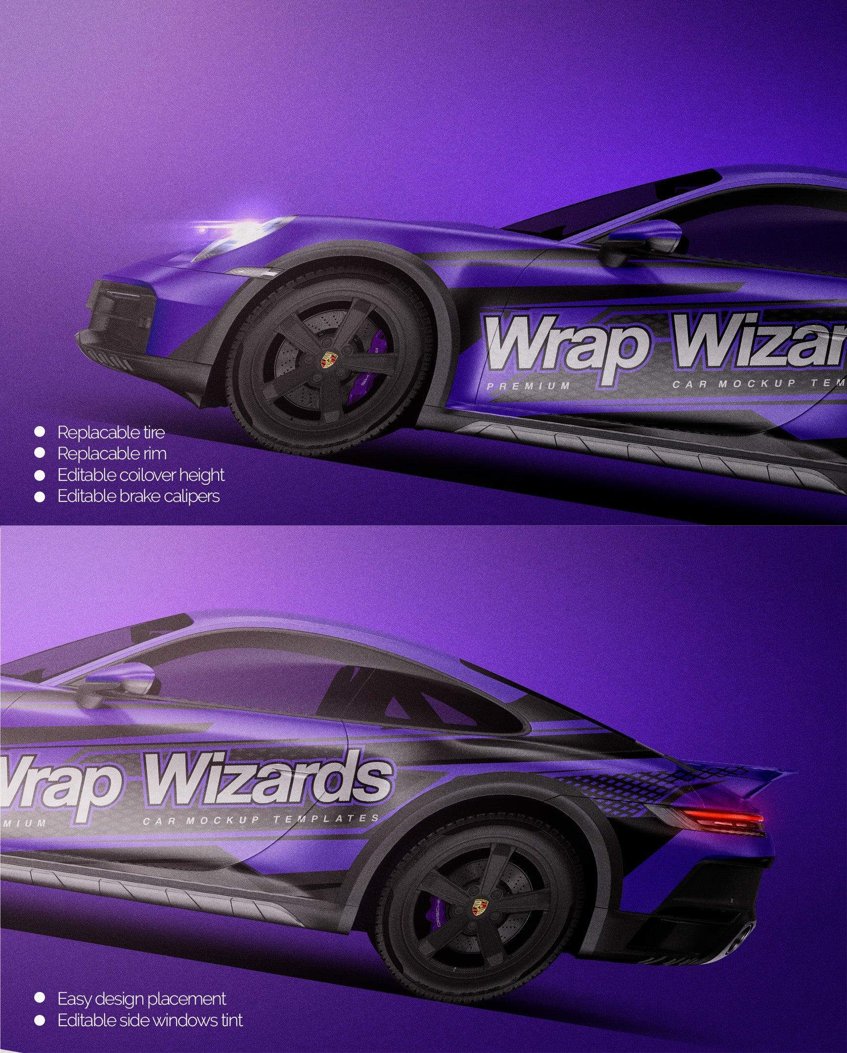 The templates are made on smartly and usefully separated layers to make adding design parts, custom color, placing logos or stickers and doing all adjustments as suspension height or rims change as easy and quick as possible - because we want to improve your job and save your time!