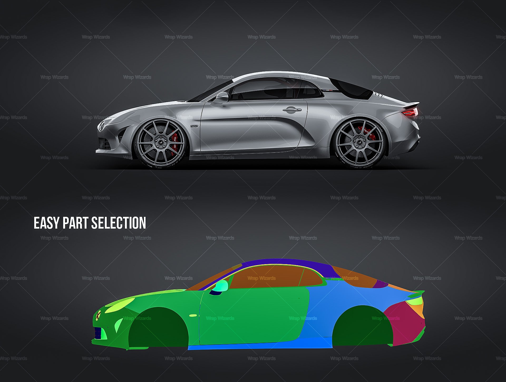The templates are made on smartly and usefully separated layers to make adding design parts, custom color, placing logos or stickers and doing all adjustments as suspension height or rims change as easy and quick as possible - because we want to improve your job and save your time!