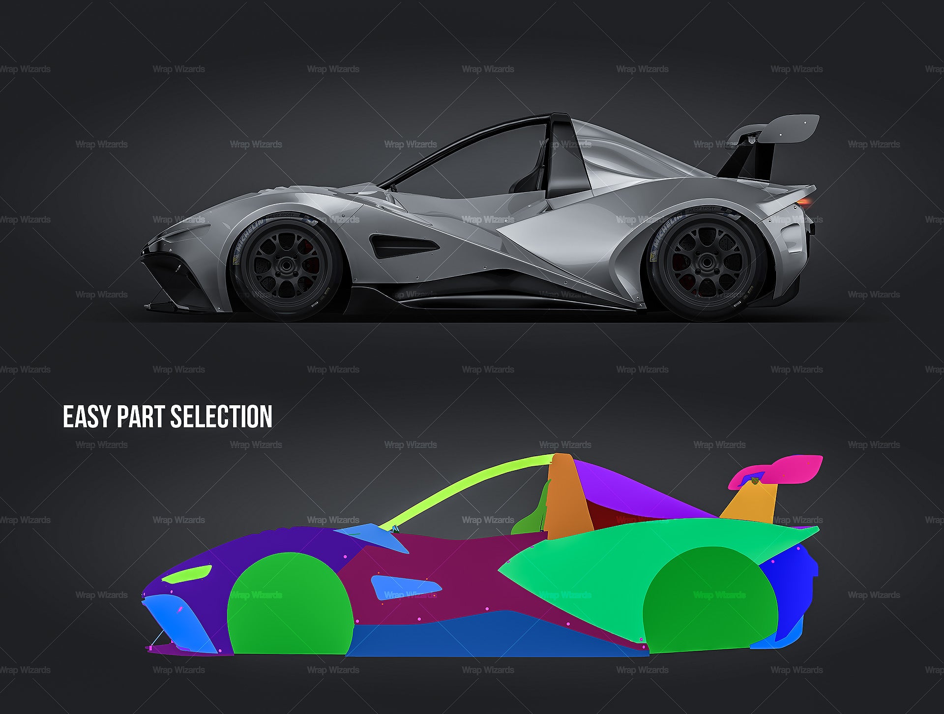 The templates are made on smartly and usefully separated layers to make adding design parts, custom color, placing logos or stickers and doing all adjustments as suspension height or rims change as easy and quick as possible - because we want to improve your job and save your time!